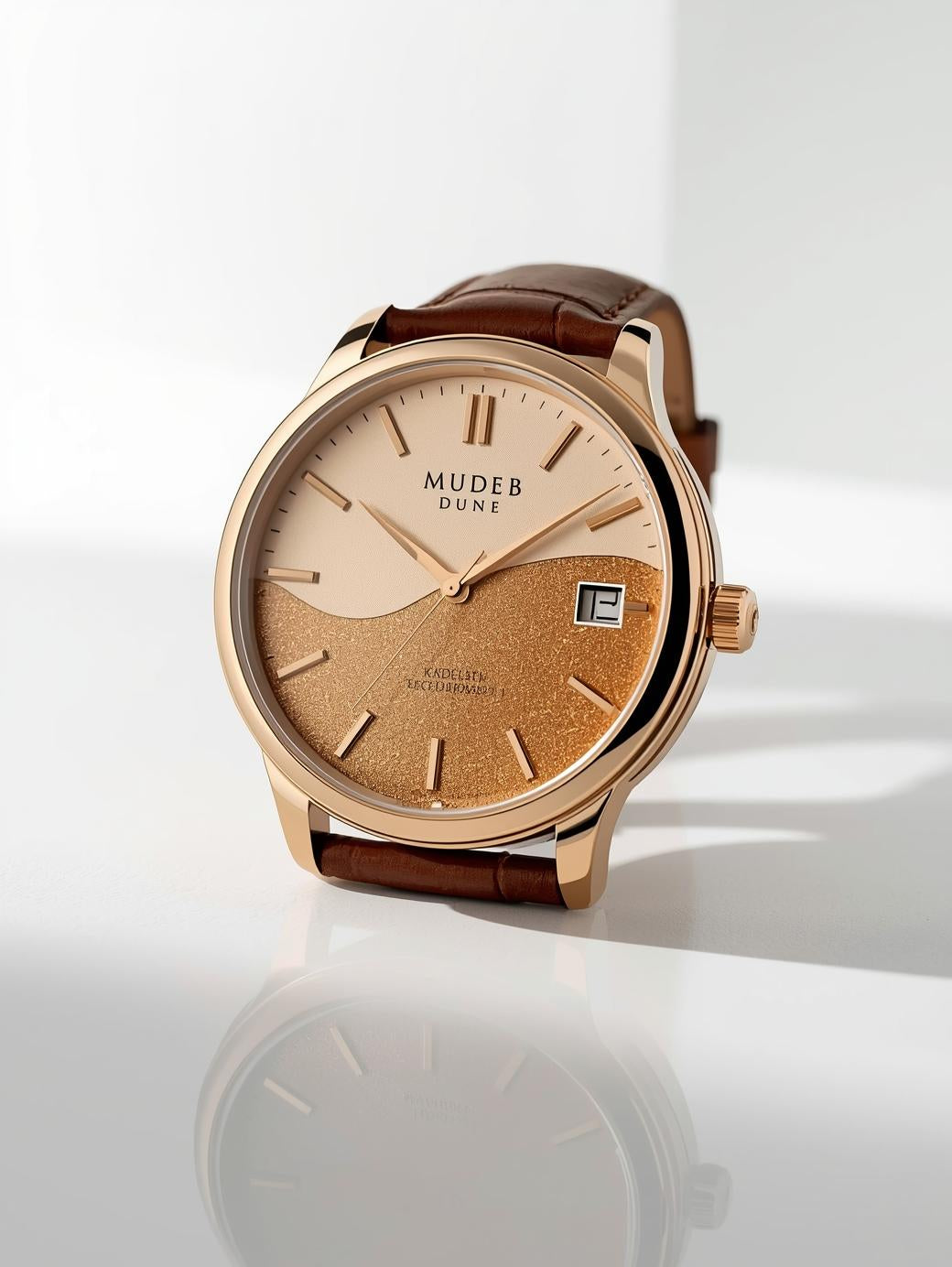 Dune is shaped by time, movement, and restraint. Each watch carries real desert sand sealed within the dial, turning nature's quietest force into wearable art. The design draws from the patience of shifting dunes, the warmth of golden landscapes, and the endurance of things that form slowly.